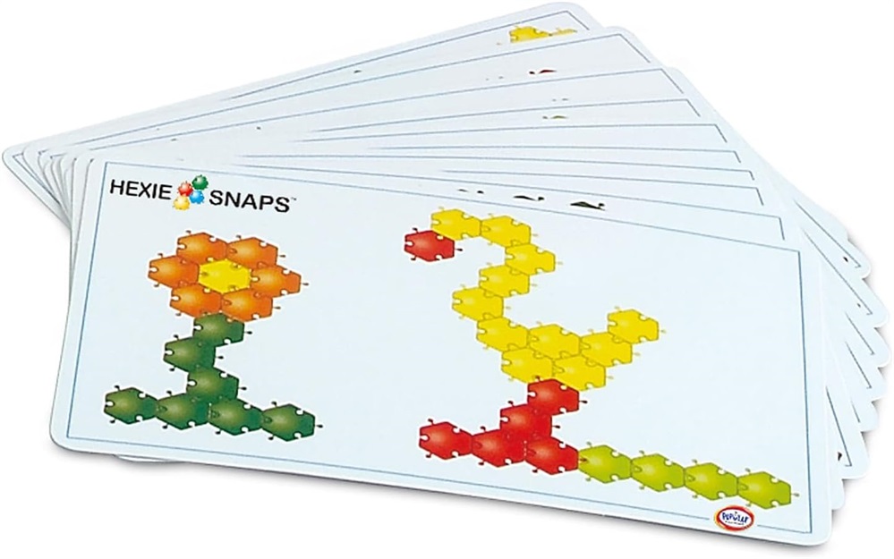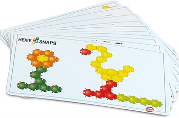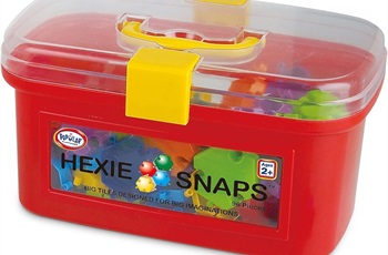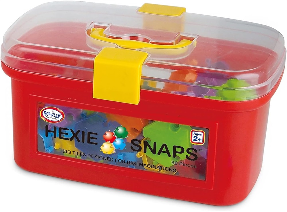 Hexie Snaps are brightly coloured hexagonal pieces that slot together easily to form 2D patterns and pictures. Each piece measures 7cm in diameter making them ideal for children aged 2 years and up. Set comprises 96 brightly coloured pieces. Develops hand eye coordination, fine motor skills and creative thinking. Includes a tough storage container with snap on lid. Also includes 10 double sided easy to follow ideas cards.