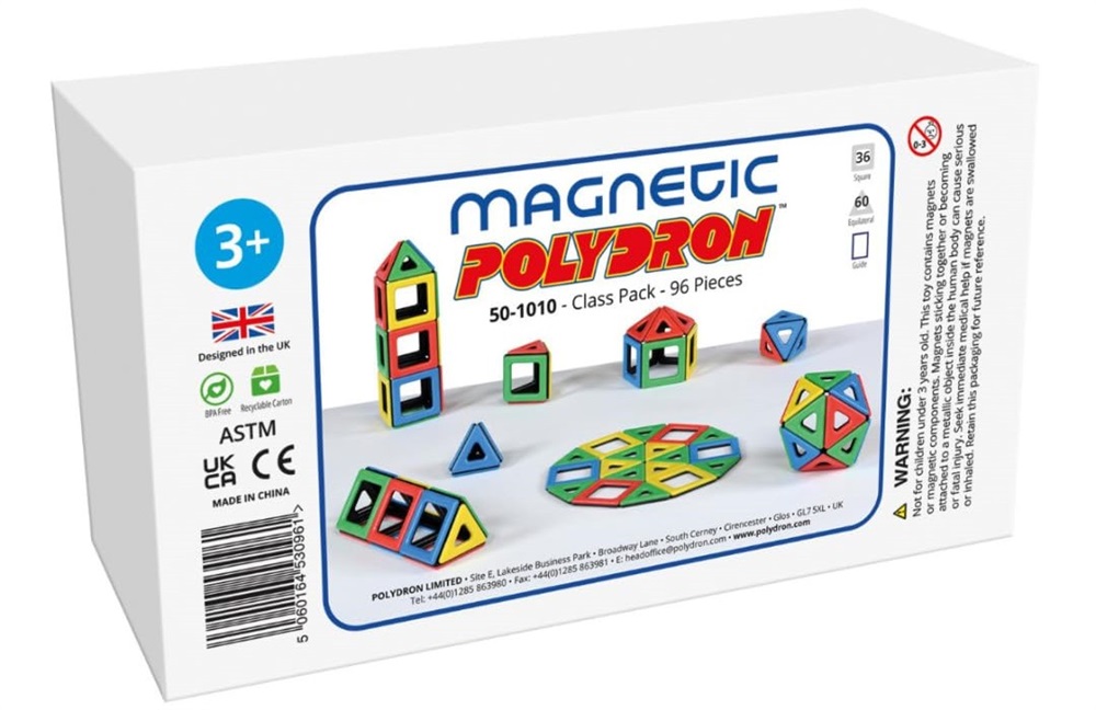 Magnetic Polydron will allow children to explore the world of shape, space and magnetism all at once. Included in this set are 36 squares, 60 triangles, and a guide.