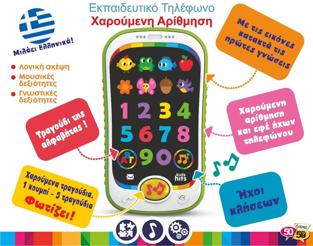 This smart phone has become a firm favourite with kids as well as parents encouraging early learning of their little ones. It’s so easy to learn numbers and colours by handling and pressing colourful buttons on the toy, and memorize the Greek alphabet by singing along to the song. The phone sound effects are really adorable and the glowing light and groovy melodies appeal not only to little kids, but keep everyone around entertained! Includes 36 sounds, phrases and animal voices and 9 funny melodies.