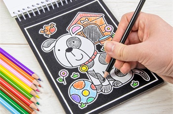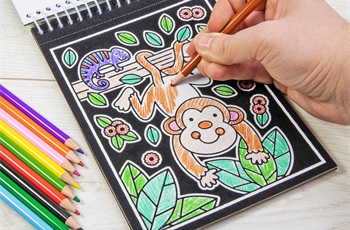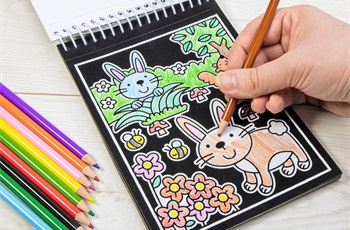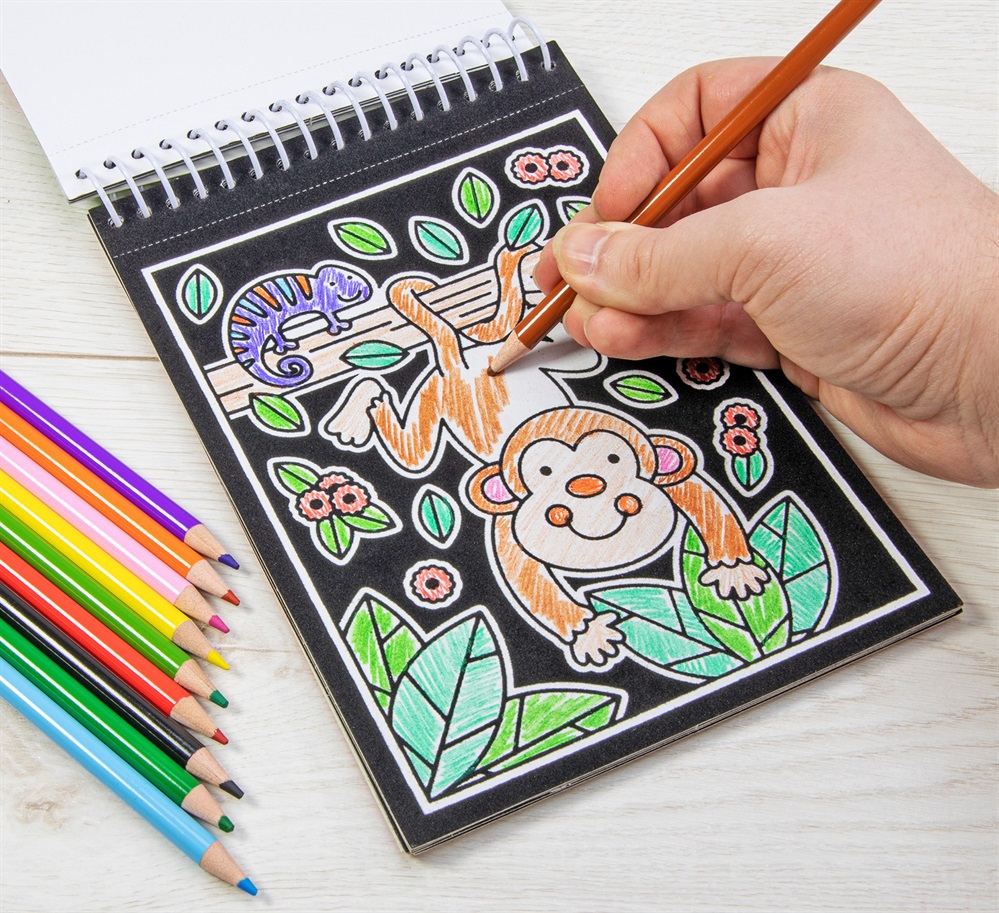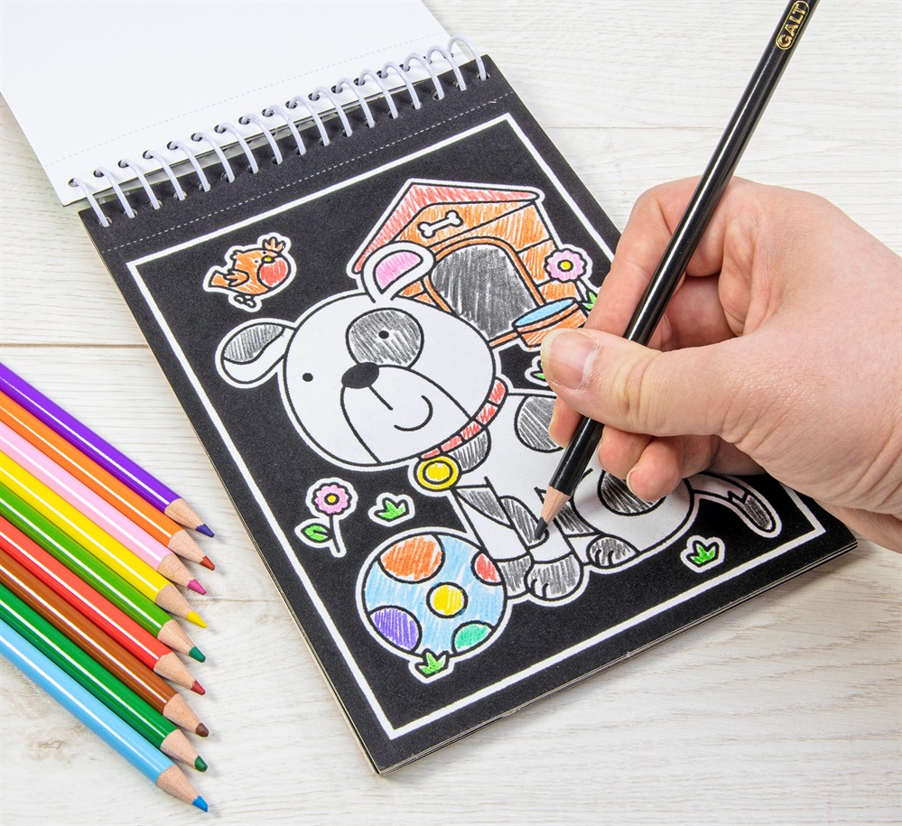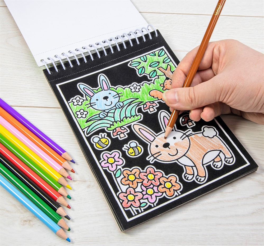 10 velvet pictures on thick board to colour and display. Colour between the black fuzzy outlines to create perfect pictures. With perforated pages.
