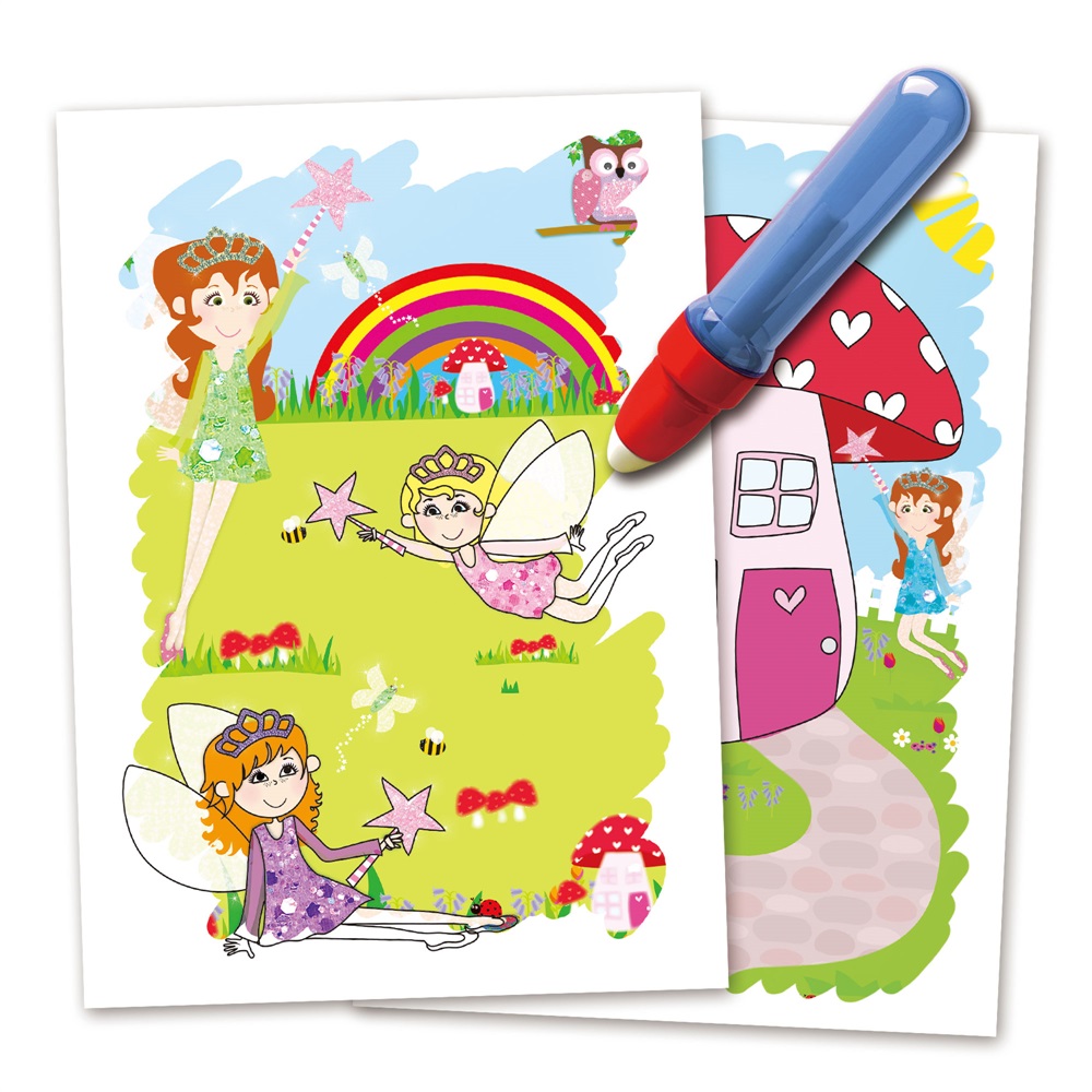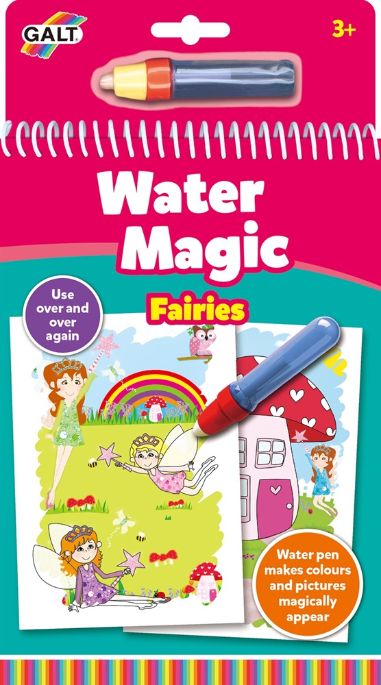 These chunky spiral books feature 6 reusable pictures to colour with the water pen. Fill the pen with water and use to reveal the hidden pictures. The coloured pictures will appear and later disappear over and over again. Ideal for travel.