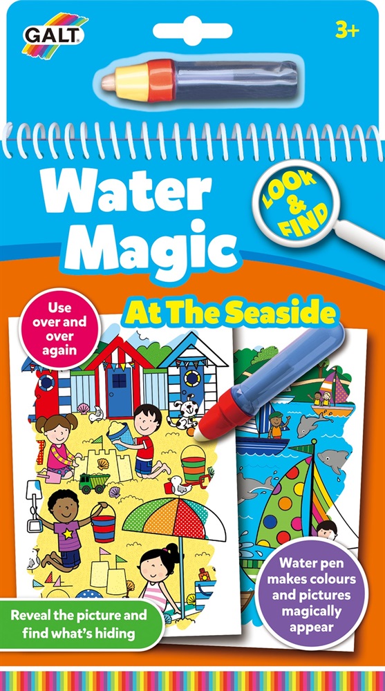 These chunky spiral books feature 6 reusable pictures to colour with the water pen. Fill the pen with water and use to reveal the hidden pictures. Then find the animal and objects in the pictures. The coloured pictures will appear and later disappear over and over again. Ideal for travel.